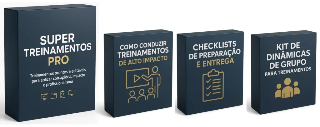O Super Treinamentos Pro é uma biblioteca digital com 170 treinamentos prontos e editáveis para você aplicar nas empresas com rapidez, impacto e profissionalismo sem criar nada do zero.